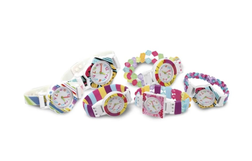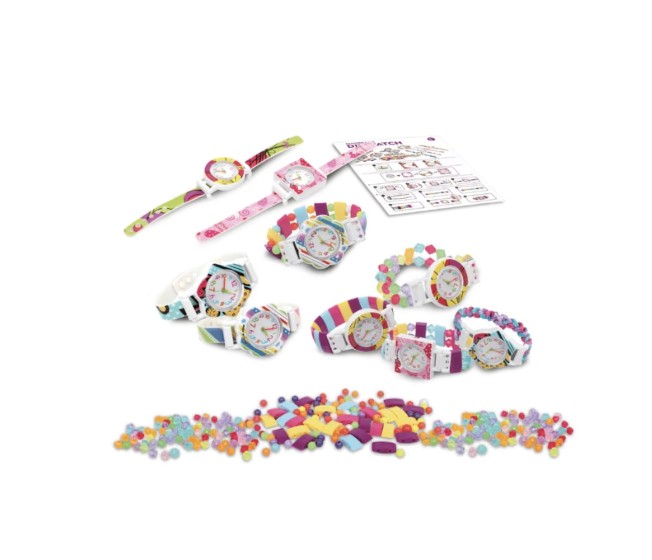 110 աքսեսուարներից բաղկացած հավաքածու՝ անընդհատ փոփոխվող ժամացույցներ ստեղծելու և դրանք ձեր բոլոր հանդերձանքների հետ համապատասխանեցնելու համար: Ընտրեք ձեր նախընտրած շրջանակը և տեղադրեք ցուցատախտակը: Ստեղծեք ձեր սեփական ժապավենը ուլունքներով կամ գունավոր թելով, կամ ընտրեք նախշավոր ժապավեն: Կրեք այն և լրացրեք ձեր հանդերձանքը: