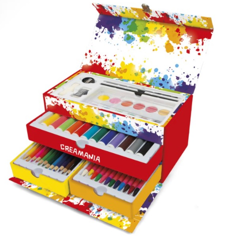 Գեղարվեստական պայուսակը եռաստիճան տուփ է՝ գունազարդման և նկարչության 54 աքսեսուարներով:
