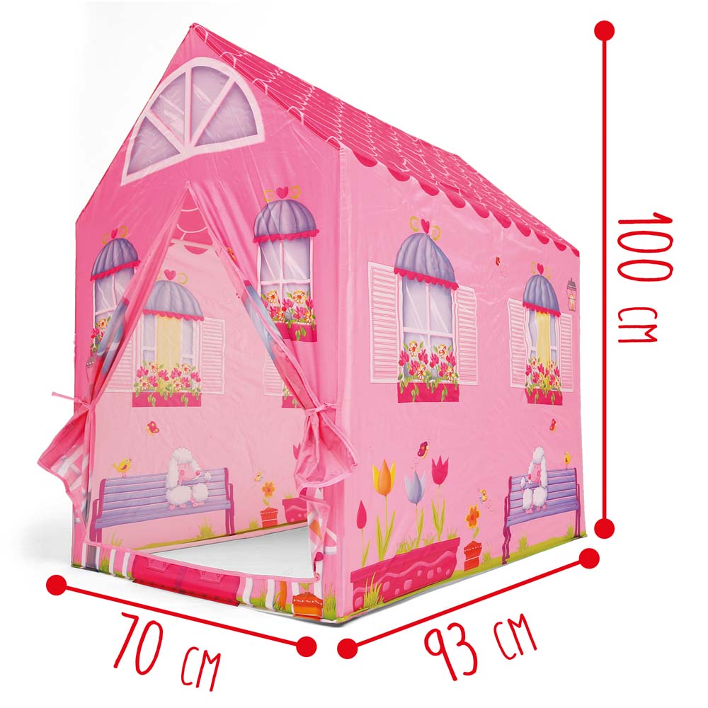 Տնակային վրանը հիանալի տարբերակ է այն երեխաների համար, ովքեր ցանկանում են ունենալ իրենց սեփական տարածքը խաղալու, թաքնվելու կամ հանգստանալու համար: Շնորհիվ իր արագ և հեշտ հավաքման, այս վրանը կարող է օգտագործվել ինչպես այգում, այնպես էլ ներսում: Վրանի չափսերն են 93 x 70 x 100 սմ, ինչը այն բավականաչափ մեծ է դարձնում մեկ կամ երկու երեխայի տեղավորելու համար:
