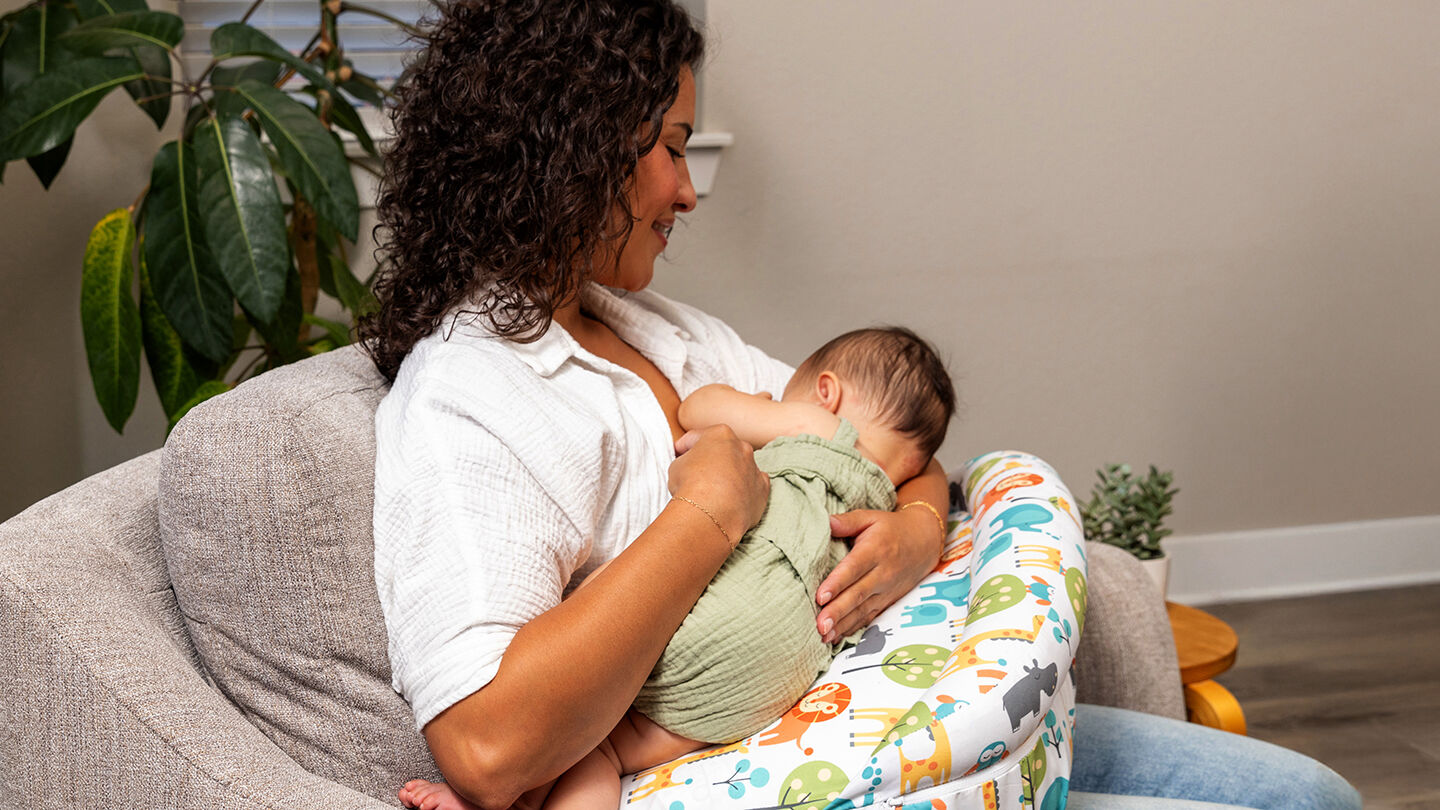 • Boppy Support-ը թույլ է տալիս մորը կերակրման ժամանակ նստել ուղղահայաց՝ առանց առաջ թեքվելու կամ կռանալու։