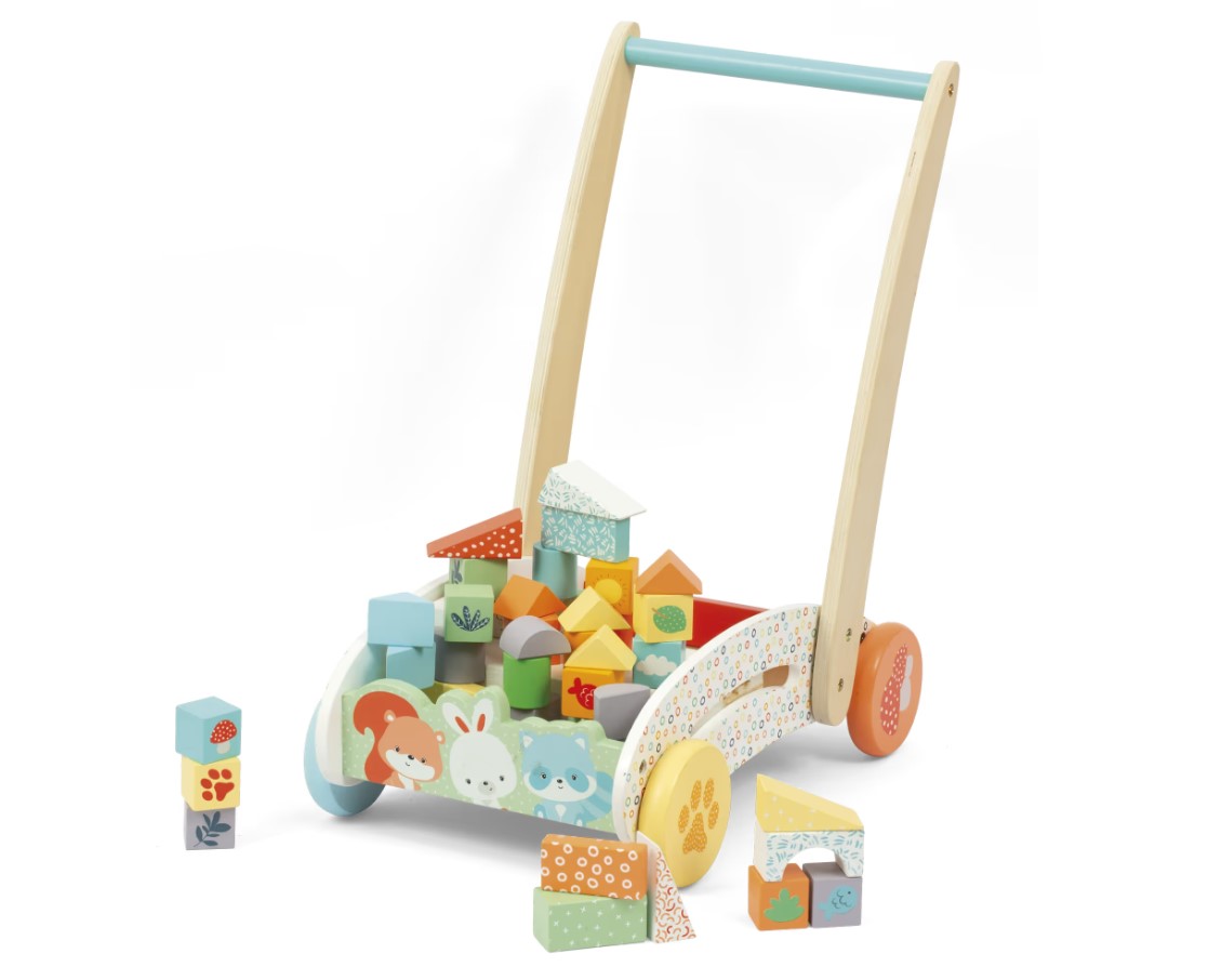 Մանկական քայլակ և 48 գունագեղ շինարարական խորանարդիկներ։ Մանկական քայլակը նպաստում է շարժողական հմտությունների զարգացմանը և երեխայի քայլելու առաջին փորձերին։ 48 շինարարական խորանարդիկների միջոցով դուք կարող եք կառուցել երբևէ ստեղծված ամենաբարձր աշտարակները՝ սովորելով տարբերակել ձևերն ու գույները։