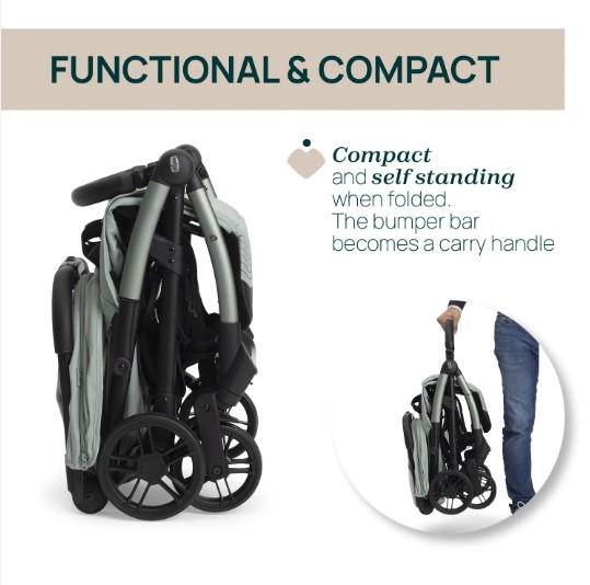 • ունի հարմարավետ հետևի բռնակ, ինչպես նաև կարգավորվող մեծ հովանոց՝ արևից ու քամուց պաշտպանելու համար,